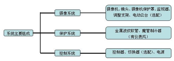 示例說明:電動云臺式常溫普通型彩色工業電視監視系統
